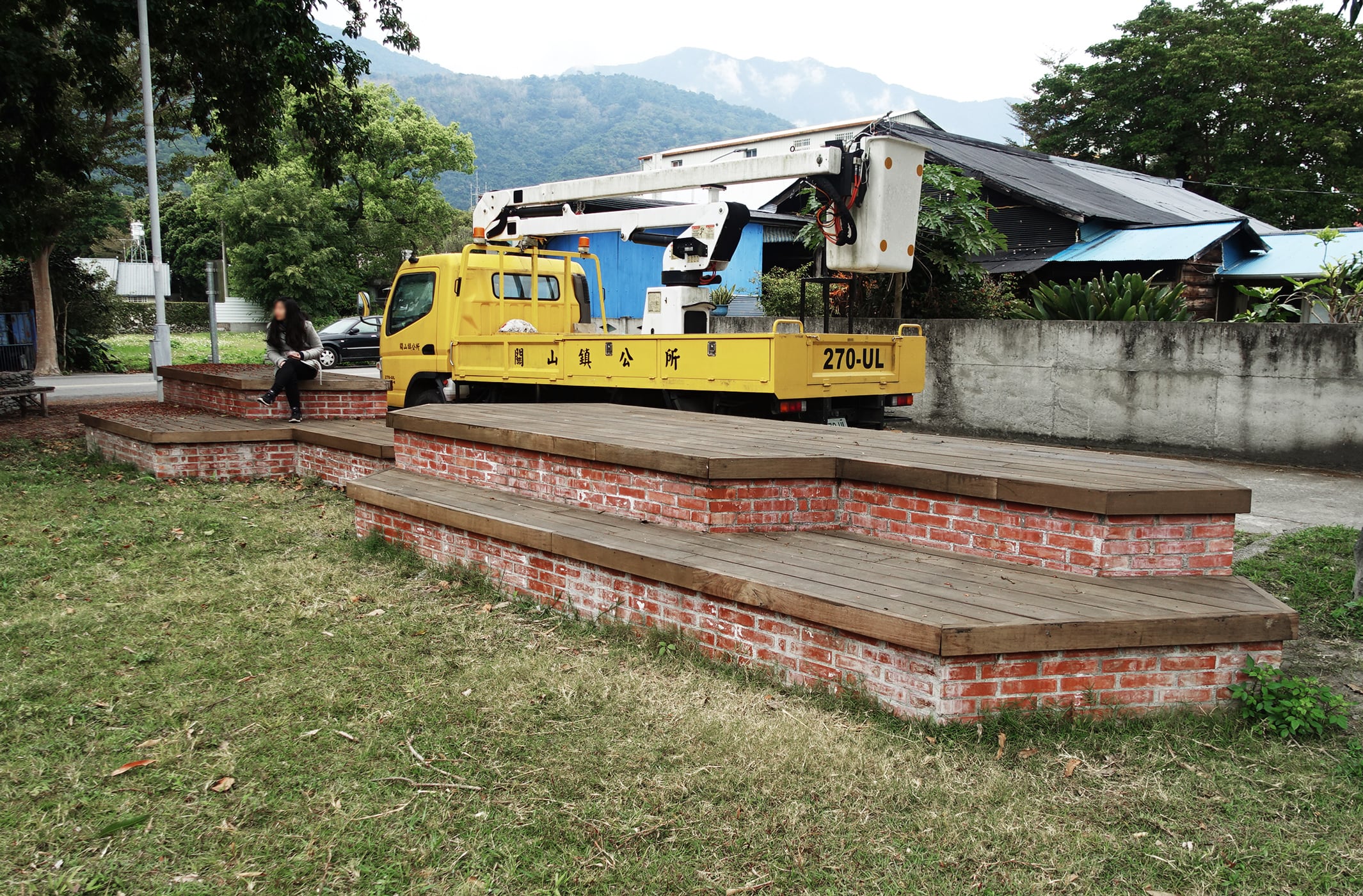 One part of the reclamation of the historic centre of Guanshan [關山] includes the small park site at the intersection of San-min and Min-zu road, a former site of a Japanese-era government-officials pension building. the is situated halfway between the train station and senior high school, surrounded by other pensions which were incorporated in the project. The idea was to create a new activity space - an outdoor-theatre, where events like concerts and other performances can be held, where students can hang out after school and where local festivities can take place.