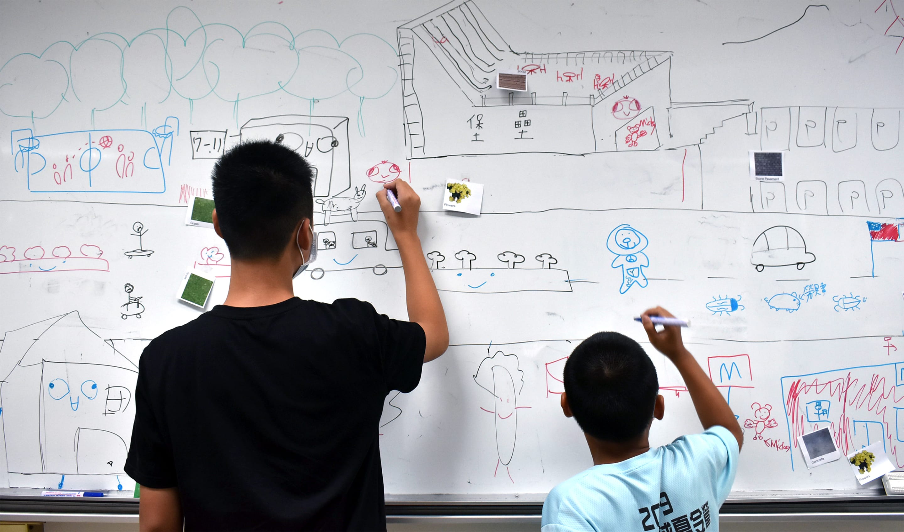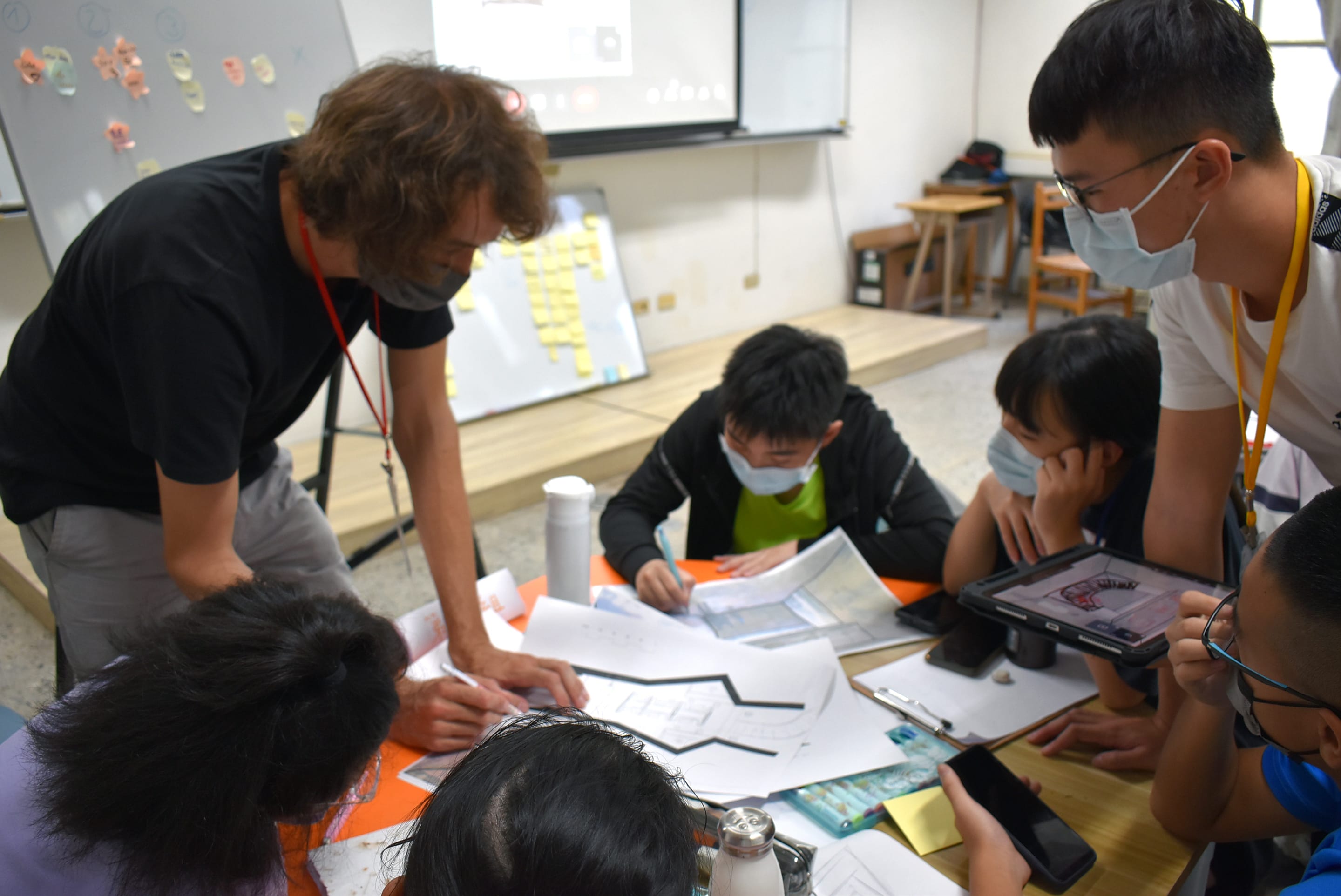 Participants, aged 6 - 14, were asked to examine local military architecture (a former artillery bunker) and redesign it into a contemporary venue of their choice, including the adjacent public space. They were guided through activities such as critical evaluation of public spaces, group discussions and brainstorming, interactive outdoor games focusing on surface materials and introduced to the design process and asked to craft an output (collages, photographs, sketches, drawings, posters). The results were exhibited at the end of the workshop at Quemoy University.